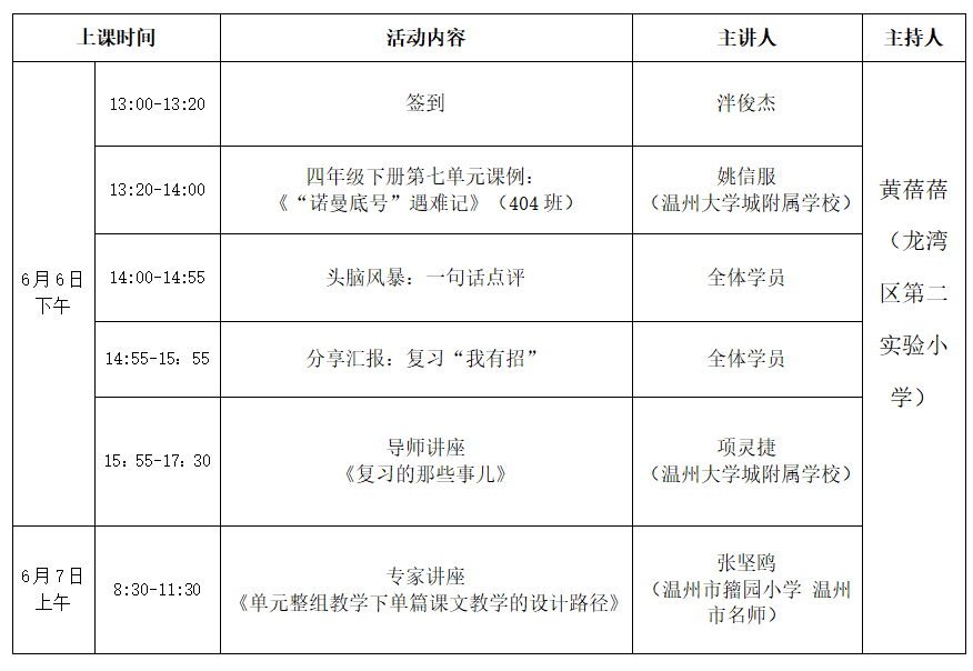 关于举行温州市项灵捷“名师送教”工作室第6次活动的通知