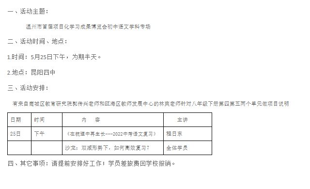关于举行温州市程日东初中语文“名师送教”工作室第7次活动的通知