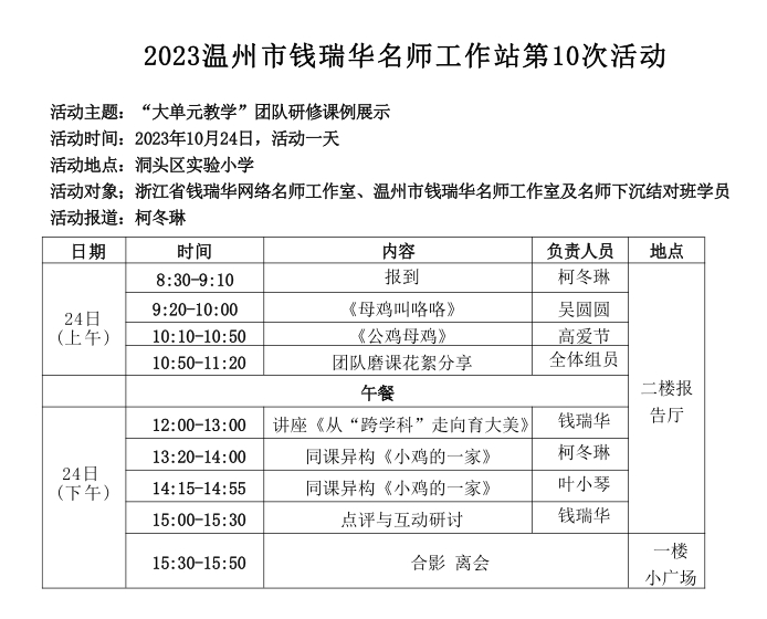 关于举行温州市钱瑞华“名师送教”工作室第10次活动的通知