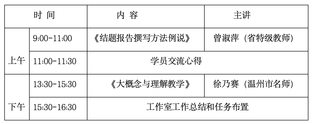 为了实施新课标“基于大概念”为主题的课堂教学,更好的提升教师教科研能力,总结教育教学经验,物化教育智慧。根据温州林雪微名师工作室的计划,决定举行大概念统整下的课堂教学研讨活动和教科研活动。具体通知如下: